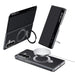 Ring clasp stand for secure holding and hands-free viewing.