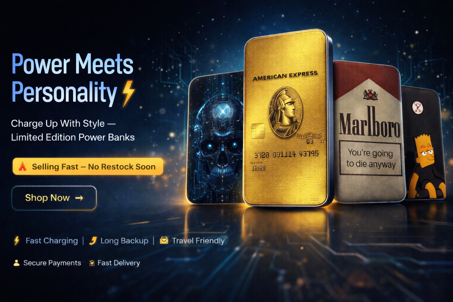 Cyber Skull Magnetic Power Bank — A bold fusion of futuristic design and everyday functionality, this power bank features a striking cybernetic skull illuminated with electric blue circuitry, symbolizing raw digital power and innovation. Specifications: Small and compact: Weight: 143 g Dimensions: 10 cm x...- Rs. 2,999.00